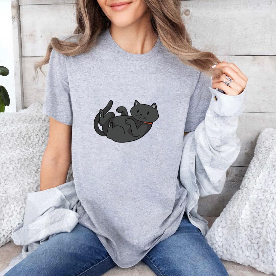 Comfy, casual, and always in style, this Cute Black Cat On Its Back T-Shirt T-shirt is perfect for daily wear or easy gifting.