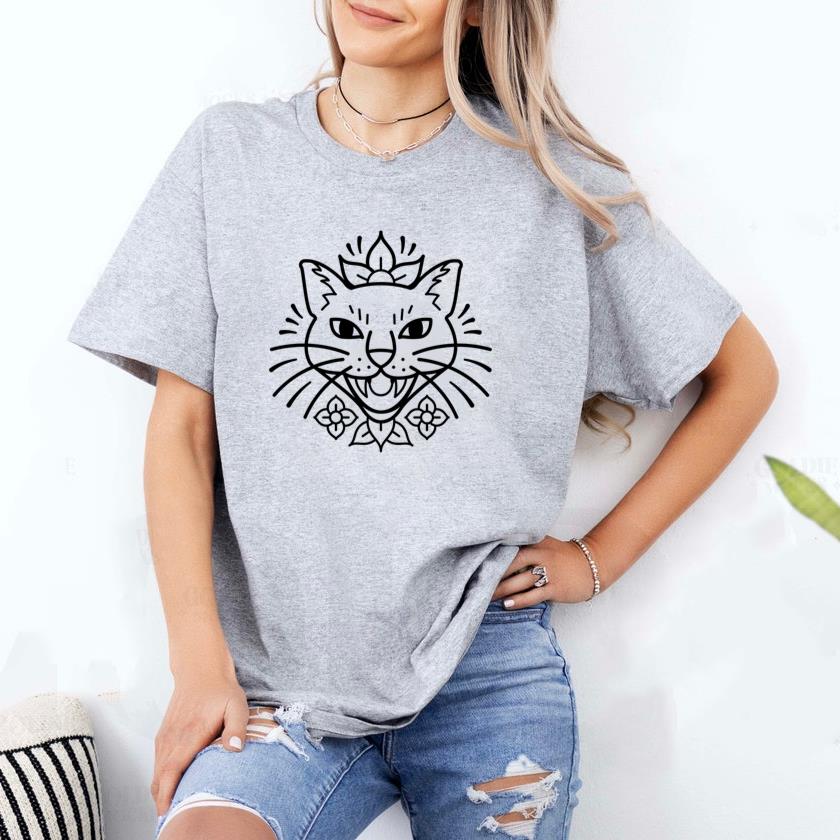 Comfy, casual, and always in style, this Floral Cat Tattoo T-Shirt T-shirt is perfect for daily wear or easy gifting.