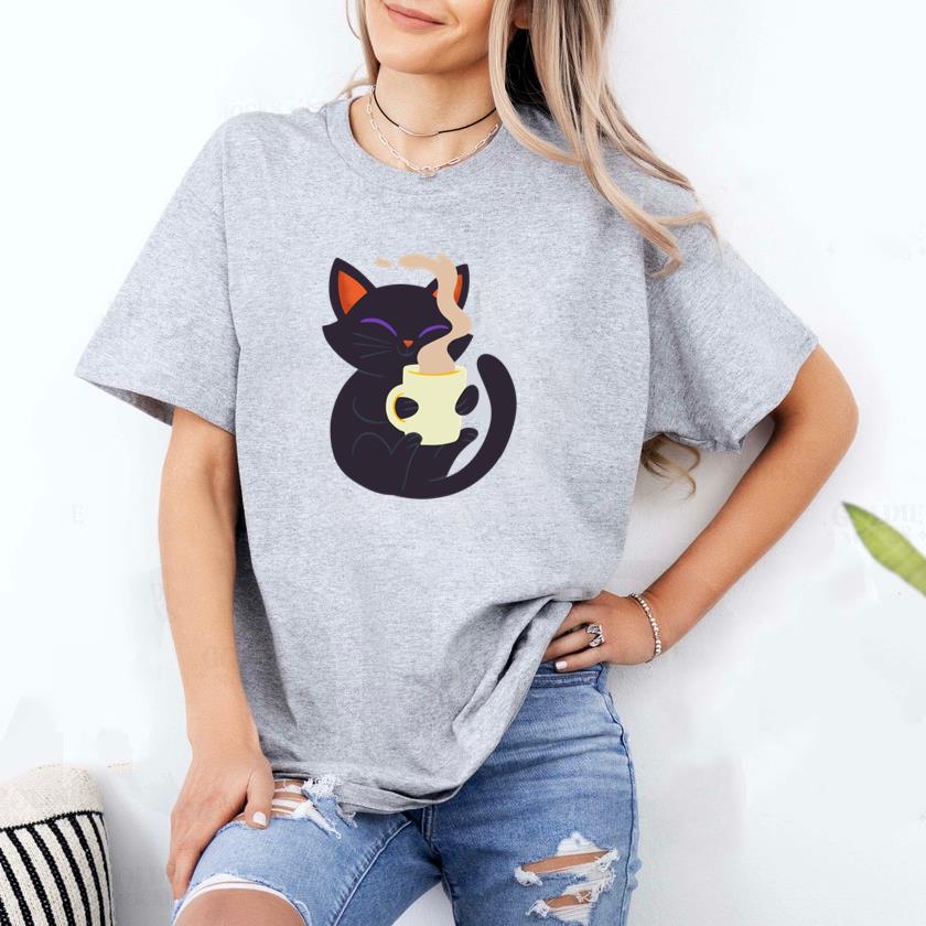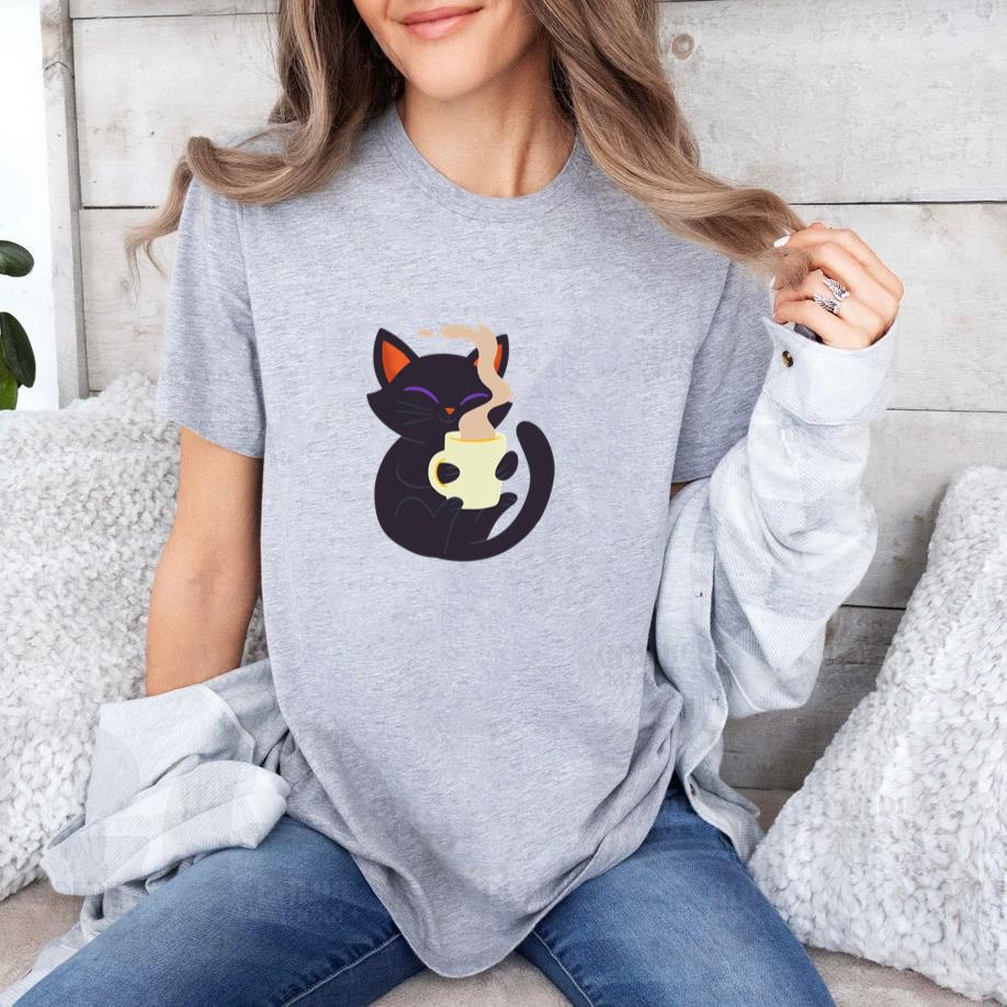 Comfy, casual, and always in style, this Halloween Cat Drinking Hot Chocolate T-Shirt T-shirt is perfect for daily wear or easy gifting.