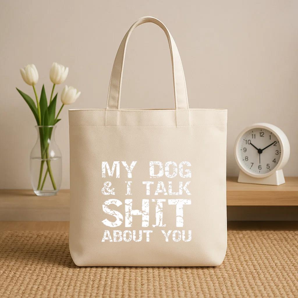 Chic, durable, and reusable , this My Dog And I Talk Shit About You Canvas Tote Bag Canvas Tote Bag is your daily go-to or a thoughtful gift for any occasion.