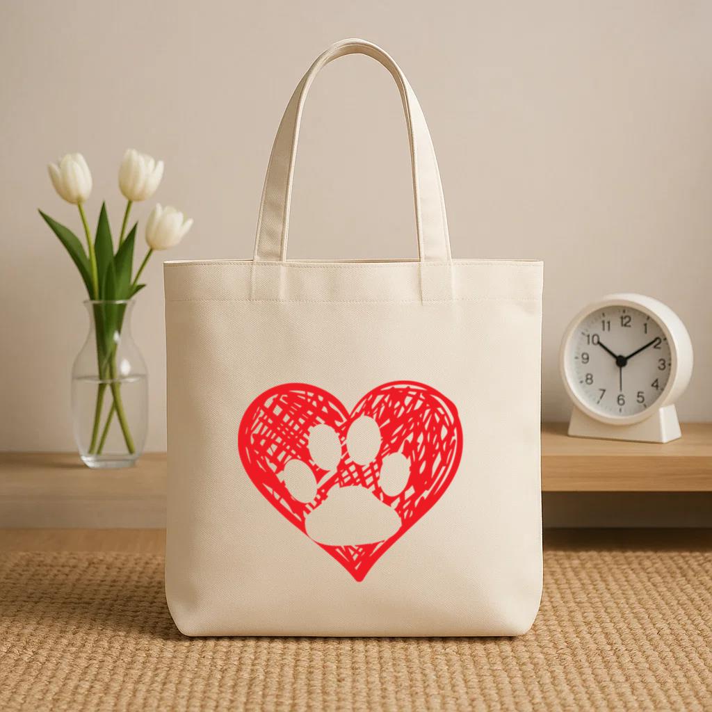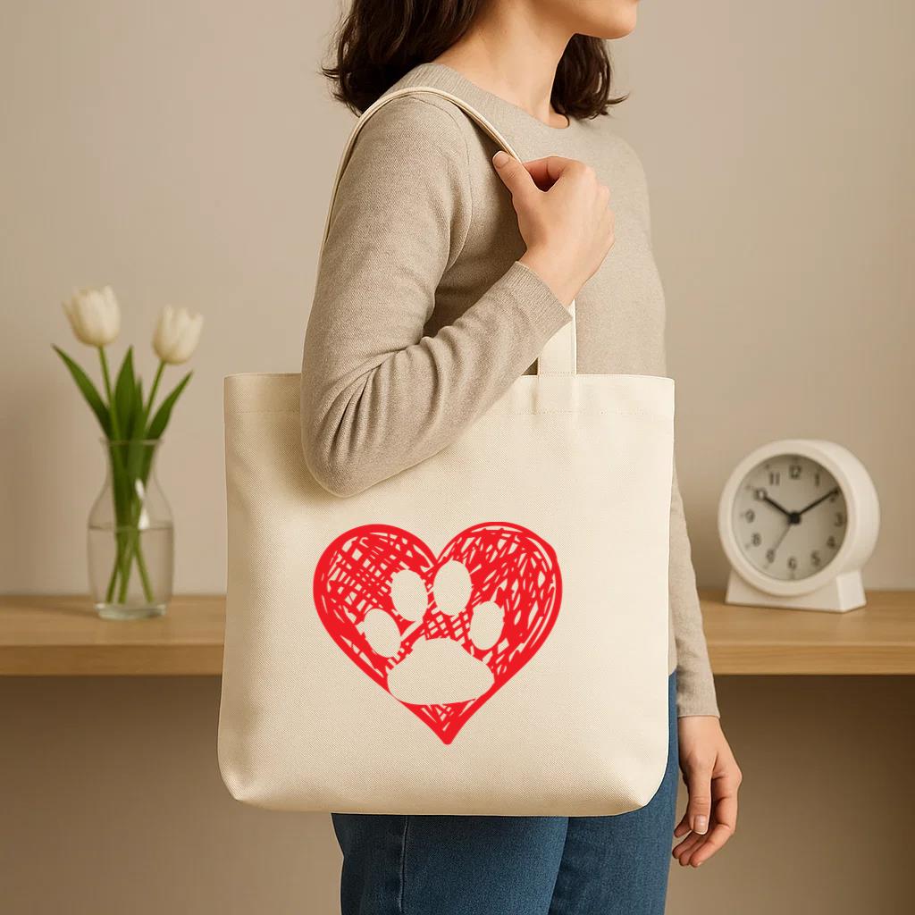 Chic, durable, and reusable , this Paw Heart Love Dog Canvas Tote Bag Canvas Tote Bag is your daily go-to or a thoughtful gift for any occasion.