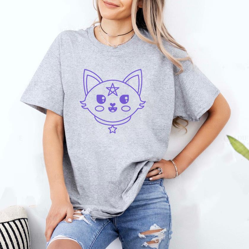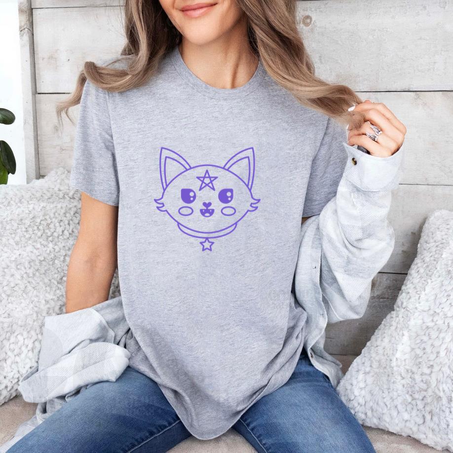 Comfy, casual, and always in style, this Purple Cat With A Star On Its Head T-Shirt T-shirt is perfect for daily wear or easy gifting.