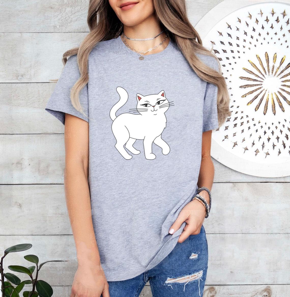 Comfy, casual, and always in style, this White Cat Is Standing T-Shirt T-shirt is perfect for daily wear or easy gifting.